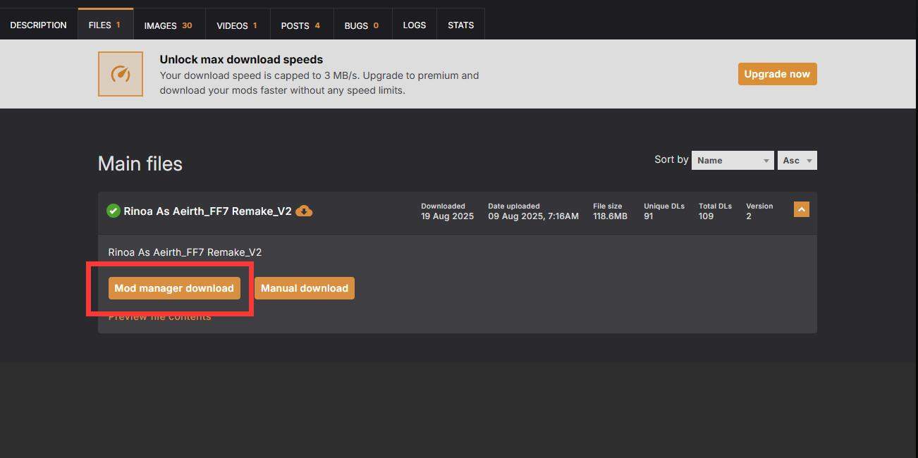 当您进入N网的模组详情页面,选择下载文件时。(如下图)